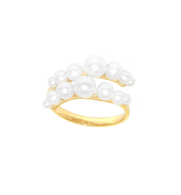 As 14 pérolas naturais formam um desenho suave e orgânico, que abraça o dedo com elegância serena e um brilho aveludado.