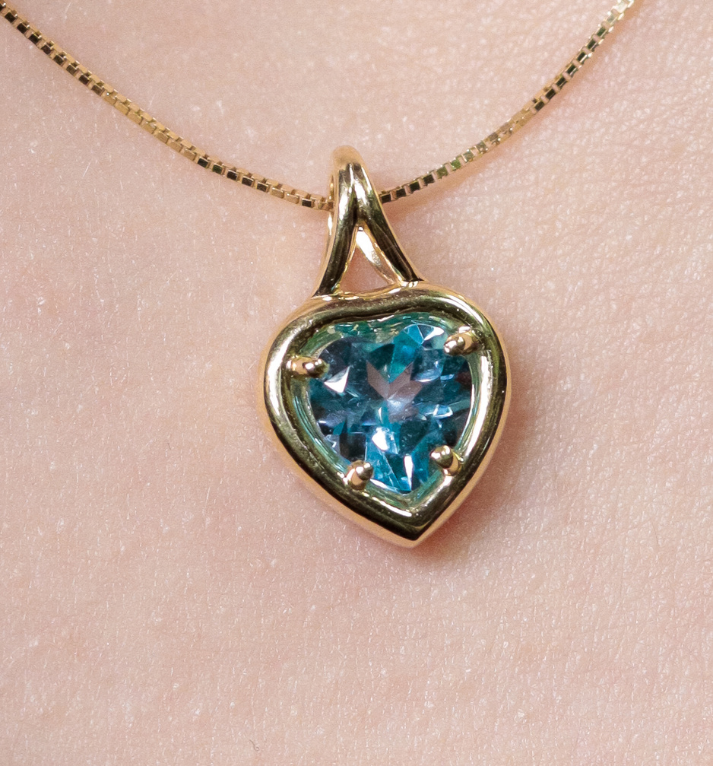 Este pingente em formato de coração, lapidado em uma vibrante gema azul natural, foi criado para expressar afeto, presença e beleza luminosa.