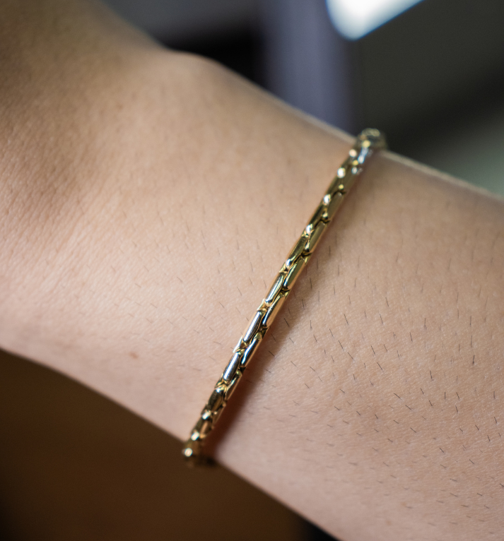A pulseira navete traduz o equilíbrio perfeito entre leveza e presença.